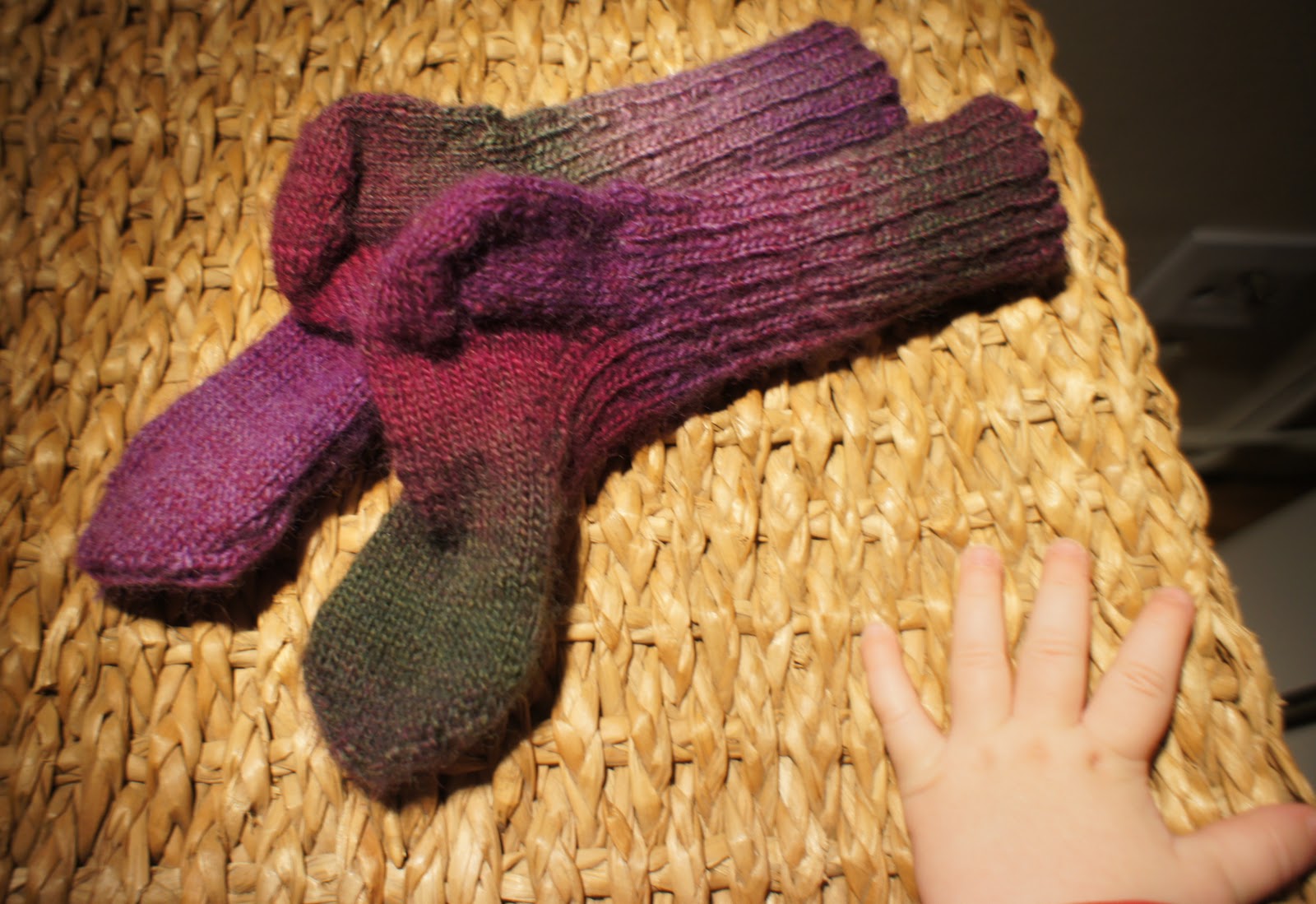 Så är dom äntligen klara! Men Lova vägrat att testa dem. Nej. Inte. Nix. Inte en chans. Hon som väntade så ivrigt och va så stolt att jag stickade till henne den här gången...